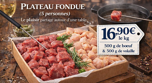 Notre Plateau Fondue est composé de viandes soigneusement sélectionnées et découpées avec précision par nos bouchers.